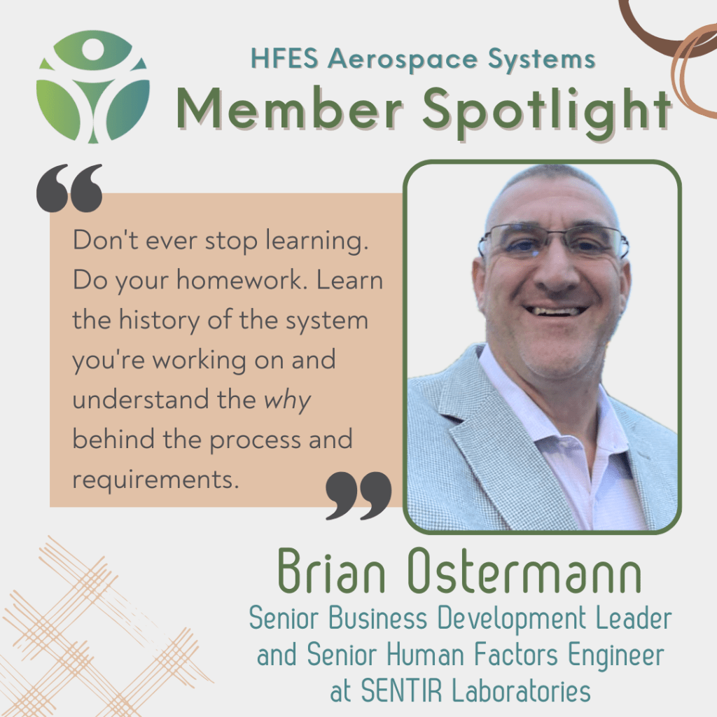 Brian Ostermann, Senior Business Development Leader and Senior Human Factors Engineer at SENTIR Laboratories, has built a dynamic career blending human factors expertise with business development. At SENTIR, he initially contributed to a high-impact Air Force project, completing it ahead of schedule and delivering actionable insights to decision-makers. Transitioning to business development, Brian emphasizes networking, understanding client needs, and leveraging SENTIR’s capabilities to solve industry challenges. His diverse background, from serving as a flight engineer in the Air Force to studying human factors, informs his approach to fostering collaboration and innovation. Brian’s passion for aviation, coupled with his adaptability, continues to drive his efforts to bridge technical expertise with strategic growth opportunities.